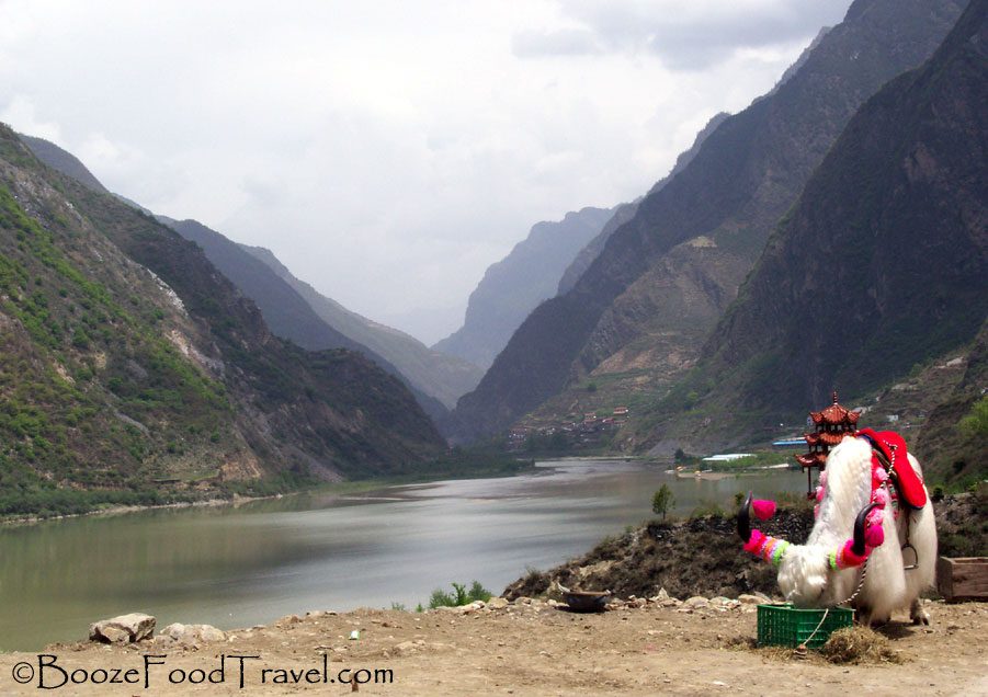 The only worthwhile part of the smoke-filled bus through the winding mountain roads of Sichuan was the scenery. There were beautiful views of terraced fields, roadside villages, and rivers. The bus also stopped a couple times for bathroom breaks. At each of those stops, there were also some local vendors selling tasty treats like dried yak meat. On the way back, I even got to sit on a yak.