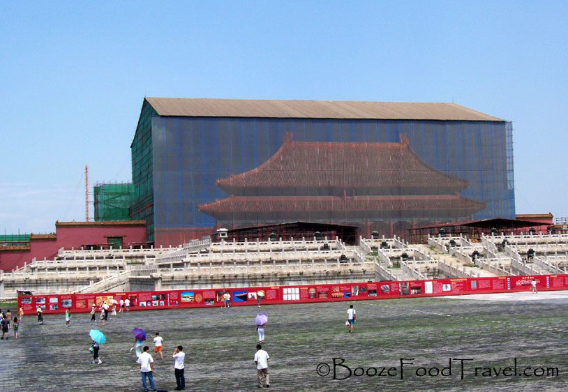 When I visited the Forbidden City in Beijing, most of it was shrouded in scaffolding in preparations for the 2008 Olympics. The Hall of Supreme Harmony was even replaced by a picture; it was a rather disappointing sight. Rather than photograph the buildings or artifacts, I focused on the crowds and the scaffolding.