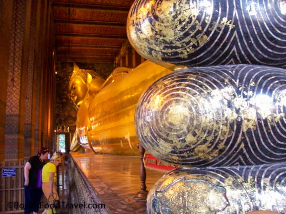 There was nothing more inspiring than looking at the enormous feet of the reclining Buddha, inlaid with Buddha images in mother of pearl. It’s almost impossible to even take a photo of the entire Buddha (I wish I had had a panoramic camera at the time). Of all the temples I visited in Thailand, I took the fewest photos of Wat Pho. That doesn’t mean, however, that I found the temple less interesting than others — sometimes you have to step away from the lens to appreciate what you see. Much like the Giant Buddha of Leshan, it’s difficult to fully portray the experience of being there.