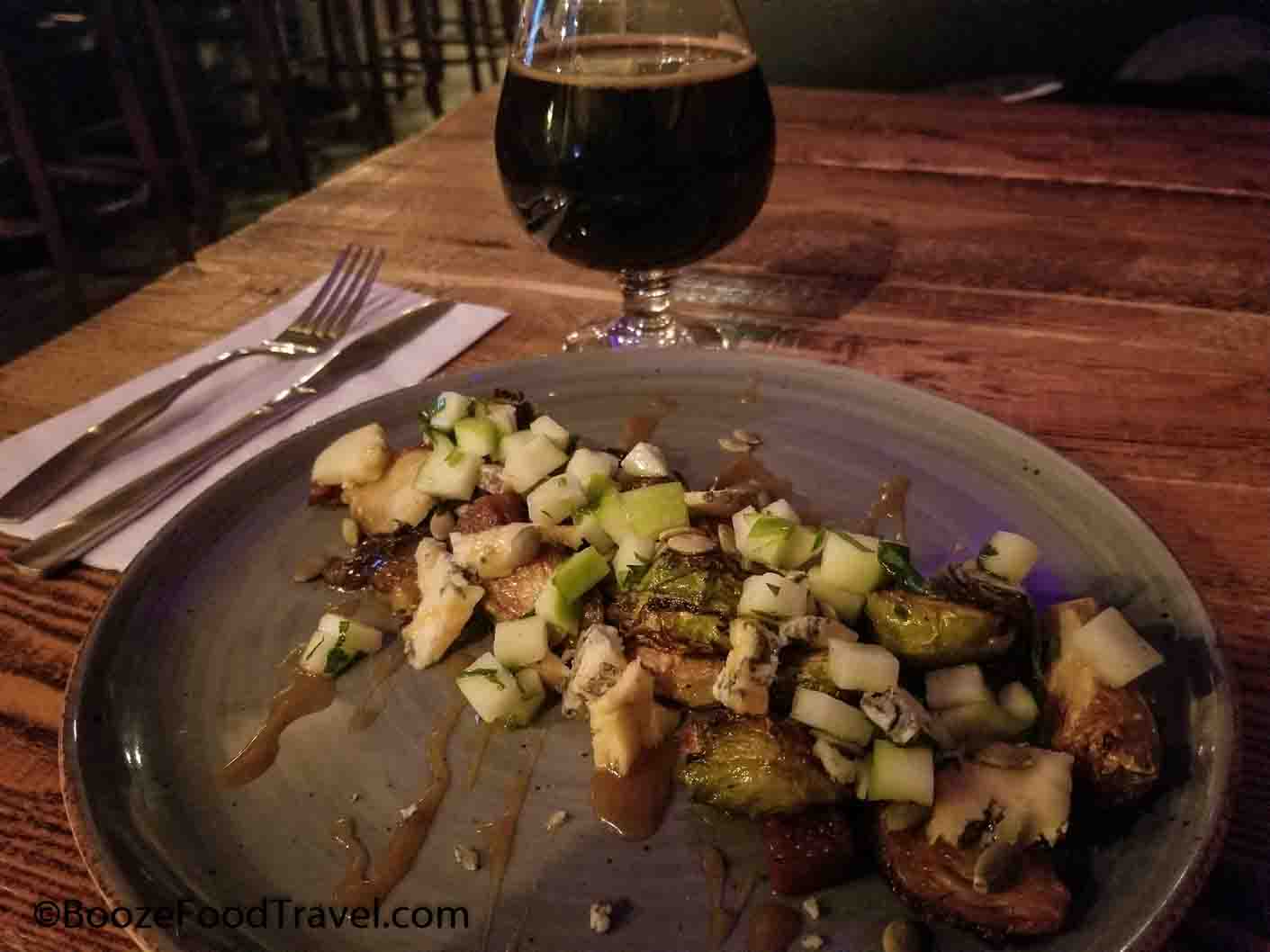 That beer paired well with my order of roasted Brussels sprouts with bleu cheese, pumpkin seeds, apple, and chunks of thick-cut bacon drizzled with honey. This dish had everything — a little bitter, sweet, salty, savory, and crunchy all at once. It was the most interesting item on the menu and made for a wonderful starter to the evening.