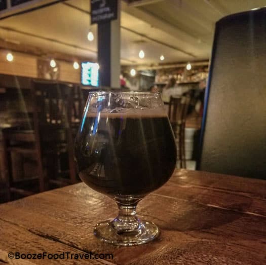 I began with Chemin de Croix, which is a smoky, smooth porter. This was perfect for the extra-cold holiday weekend. And at 6.3%, it wasn’t going to make me fall off the barstool. Of course, I still ordered some food because I had only eaten a late lunch at La Cage.