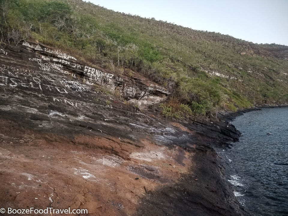 The area was a popular stop for whalers and pirates in the 17th through 19th centuries — they left plenty of graffiti on the rocks with lead paint. It was an area that the crews could easily catch giant tortoises to eat later on their journeys. And it remains a popular spot for tours. It also introduced rats and goats to the islands — many of the goats have been culled over the years, but conservationists are still trying to eradicate the rats.