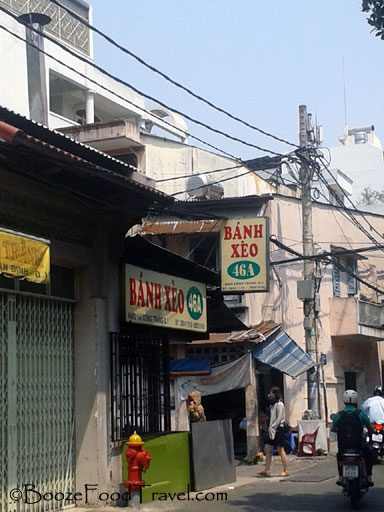 I had come across this outdoor banh xeo restaurant just down a narrow street, Ding Cong Trang, near Tan Dinh Market during one of my first days in Ho Chi Minh City. However, I postponed eating at the restaurant because I thought I’d have more opportunities to eat banh xeo, probably at a lower price. When I found the restaurant mentioned on the Travel Channel website, I decided to try it.