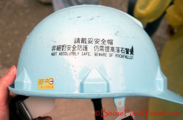 Along the road into the park, visitors are offered free helmets in case of falling rocks that appear to be rather common. Of course, for more than a small rock, the helmet will not protect you. Signs everywhere advise visitors to keep moving. If those signs weren’t ominous enough, the one before the first tunnel on the way to the Baiyang Trail and water curtain cave should be warning enough for some to not travel alone.taroko-warning