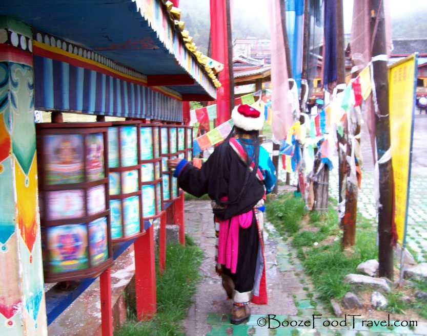 Everywhere we looked there were pieces of Tibetan culture — brightly painted buildings, jinfan and longda sending prayers through the wind, and mills powered by the rivers (and some prayer wheels turned by the same flowing waters). It was at the temple in Shuzheng village that I was blessed by a Tibetan monk.