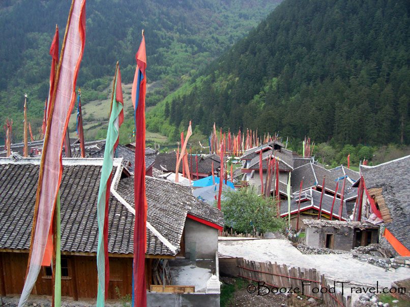 We also met two young teachers from a music college in Chengdu who were on the same bus from Huanglong — they also took the phone number for the hotel from the woman on the bus. We traveled a while with them on the second day (until one forgot his camera on the bus and had to chase it down). One of them enjoyed singing Elvis songs, but didn’t understand the meaning — I tried to explain some, but it was difficult with his limited knowledge of English. They were entertaining for the evening since we weren’t allowed to exit the property to walk around the village after 8 pm.