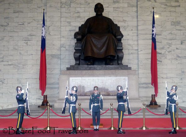 The Chiang Kai-shek Memorial Hall is a monument for the former president and military leader of the Republic of China who was driven out of mainland China along with the rest of the Kuomintang by Mao Zedong’s communist army. Chiang died in 1975, ending martial law in Taiwan. Direct presidential elections in Taiwan were not held until 1996.