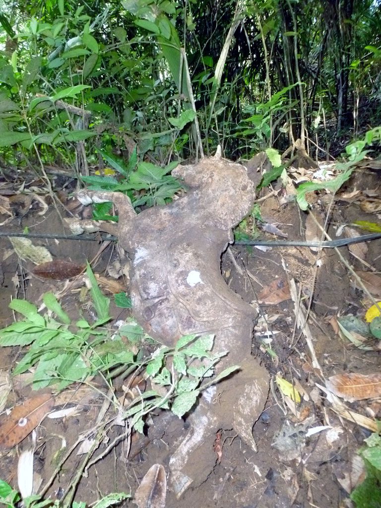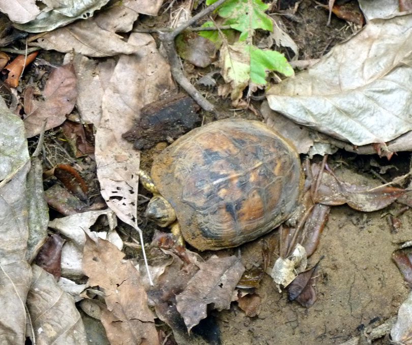 As we continued to hike along the trail, Jon and Eric continued to veer off it in the hopes of finding other animals — their goal on this trek was to find salamanders, which we didn’t see. While they didn’t find what they were looking for, they did uncover a wood turtle hiding under leaves in a dry creek. Fortunately for me, we encountered no more snakes. We also found a carousel horse along a dry creek bed, which was rather amusing.wood turtle panama