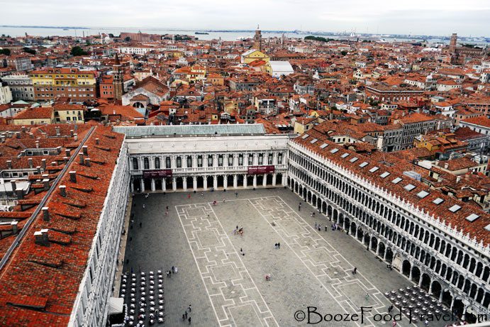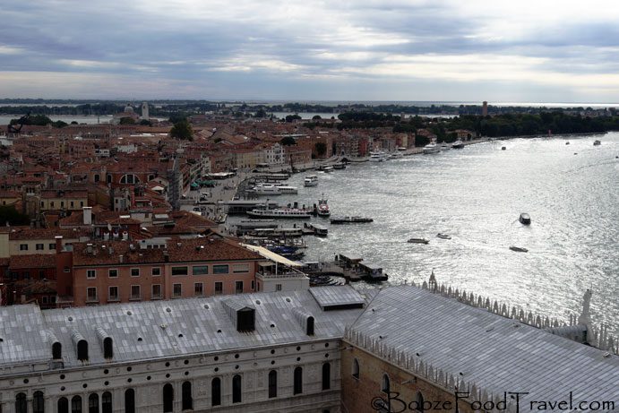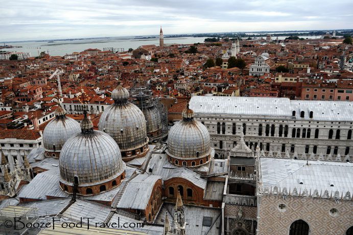 The 323-ft tall Campanile di San Marco is just across from Basilica di San Marco in the corner of the square. On a clear day you can see all of Venice and the surrounding islands from the bell tower. Of course, scaffolding ruined the view of the top of the church, but I was more interested in looking out over the lagoon and square.