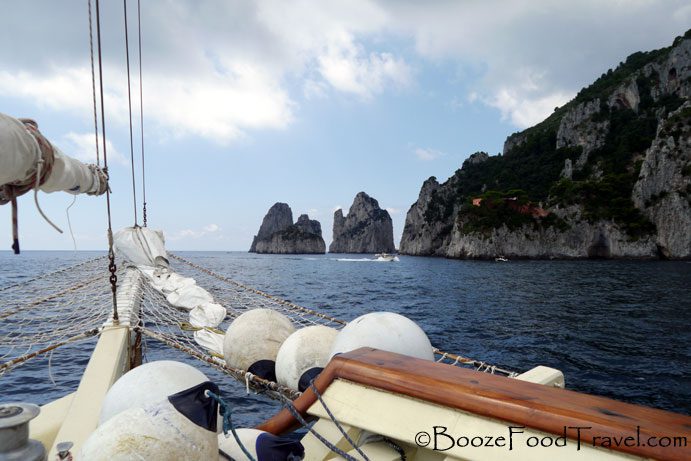 Aside from sunburn, which hurt like hell with my backpack a few days later on the way to Perugia, the day was great. The coast around Capri is picturesque, and it was interesting to see how the 1% likes to travel on yachts (boat garages on the ship with multiple boats and jet skis, or how about a helicopter?).