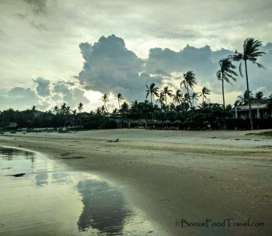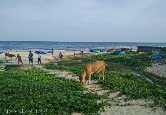 At the end of the street was a mess of parked motorbikes. The beach was covered in weeds that were being eaten by some local cattle, and there was plenty of trash strewn about. There were also small fishing boats (more like tubs with rudders) lined up across the area. I wandered off to the side and found a section of beach attached to another resort–this section was pristine and the people at my hotel’s beach didn’t venture out this far (probably because hotel staff would have chased them off).