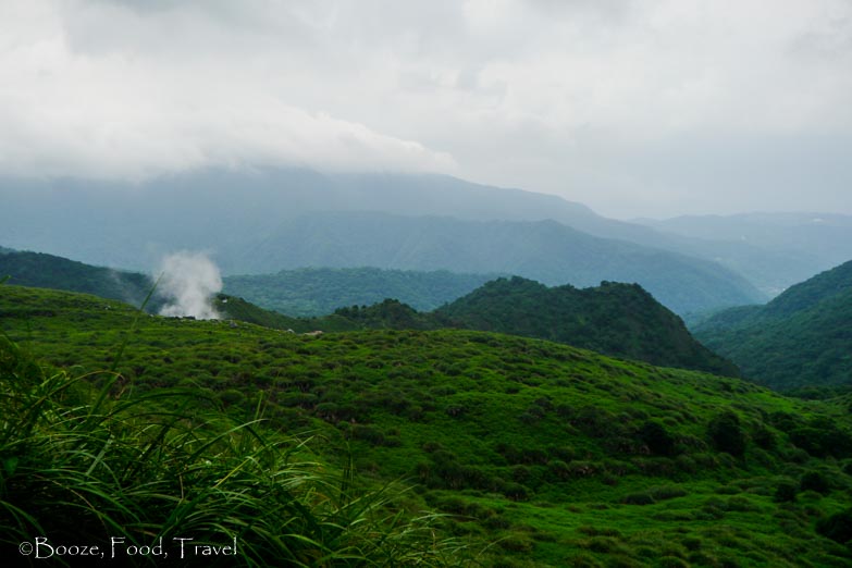We took a bus from Taipei far into Yangmingshan — I usually got off a few stops past the visitor center, where you can still see the city. We got off the bus in an area with no other people and had to find the small hotel we booked (the hotel was nothing to write about, but it did have outdoor hot springs that were covered from the rain).