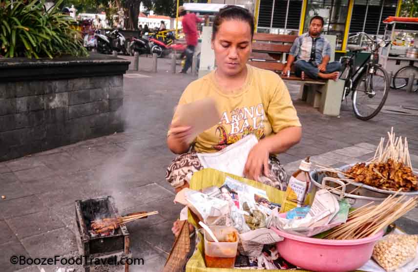 One of the easiest snacks to find on the streets of Jogja in the evening is satay. There’s usually a vendor on every corner with little skewers of meat. And it’s the cheapest food around at about 50 cents for 20 skewers (I ordered 10 because I really didn’t need 20).