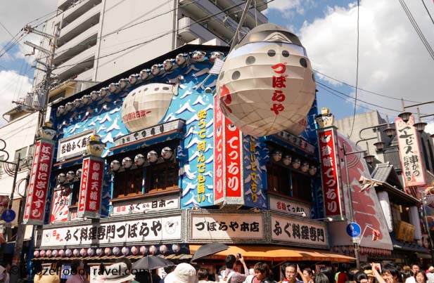 Of course, the main attraction for walking in Osaka is Dōtonbori — a touristy area for food. Of course, locals eat in the area, but it is crowded around dinnertime. The appeal in Dōtonbori isn’t always what’s on the plate, but what’s on the building above the entrance to the restaurants.