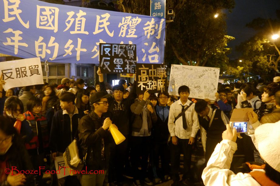 The protest started a few days ago, led by students and even organized by a few members of parliament. At issue is a trade pact between Taiwan and mainland China that the students claim serves no one but mainland China. The pact was supposed to undergo a close review in parliament, but President Ma Ying-jeou passed it with an executive order rather than parliamentary approval.