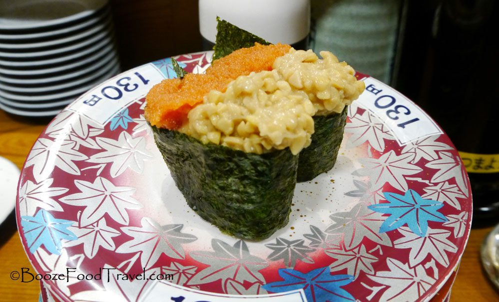 There was also the evening I dined at Sushi-Go-Round (also in Shinjuku). There’s nothing quite like sitting at a counter and grabbing plates of sushi from a conveyor belt. Most of what passed by was not identifiable without knowledge of Japanese characters — I still have no idea what the last thing I ate was, but it definitely should’ve stayed on the conveyor.