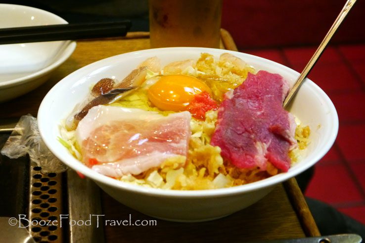 We also ordered some other variation of okonomiyaki (or maybe it was just some similar cooking style) that wasn’t really a pancake, but more of a mess. We had to ask for help making it because my companions only had it once before and had forgotten what to do with it.
