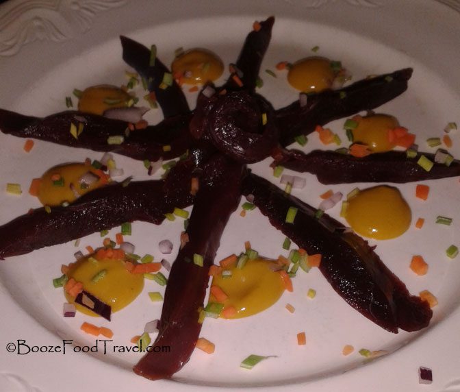 The best lunch I had in Iceland was at the Fish Market restaurant in downtown Reykjavik. This is a trendy, Japanese-inspired restaurant — they have a lot of sushi on the menu. I felt rather underdressed with all the businesspeople having lunch. The waiter was kind enough to talk me out of the crunchy duck salad–he said it’d be too much food to go along with my oven-baked blueling. He was right, there was plenty to eat on my plate, which included a black rice chili dressing to spread on the bread.