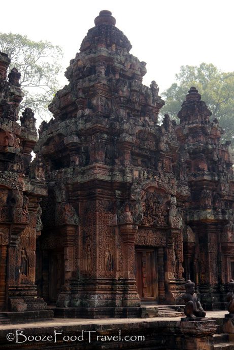 Banteay Srei, a Hindu temple dedicated to Shiva that was constructed in the 10th century, is much further from the main temples of the Angkor Wat complex — it was a long way past the Landmine Museum, which was about 20 miles from Siem Reap. This was the temple at which a monk used a cell phone to take a picture of me — and I still think is one of the funniest moments I’ve had while traveling.
